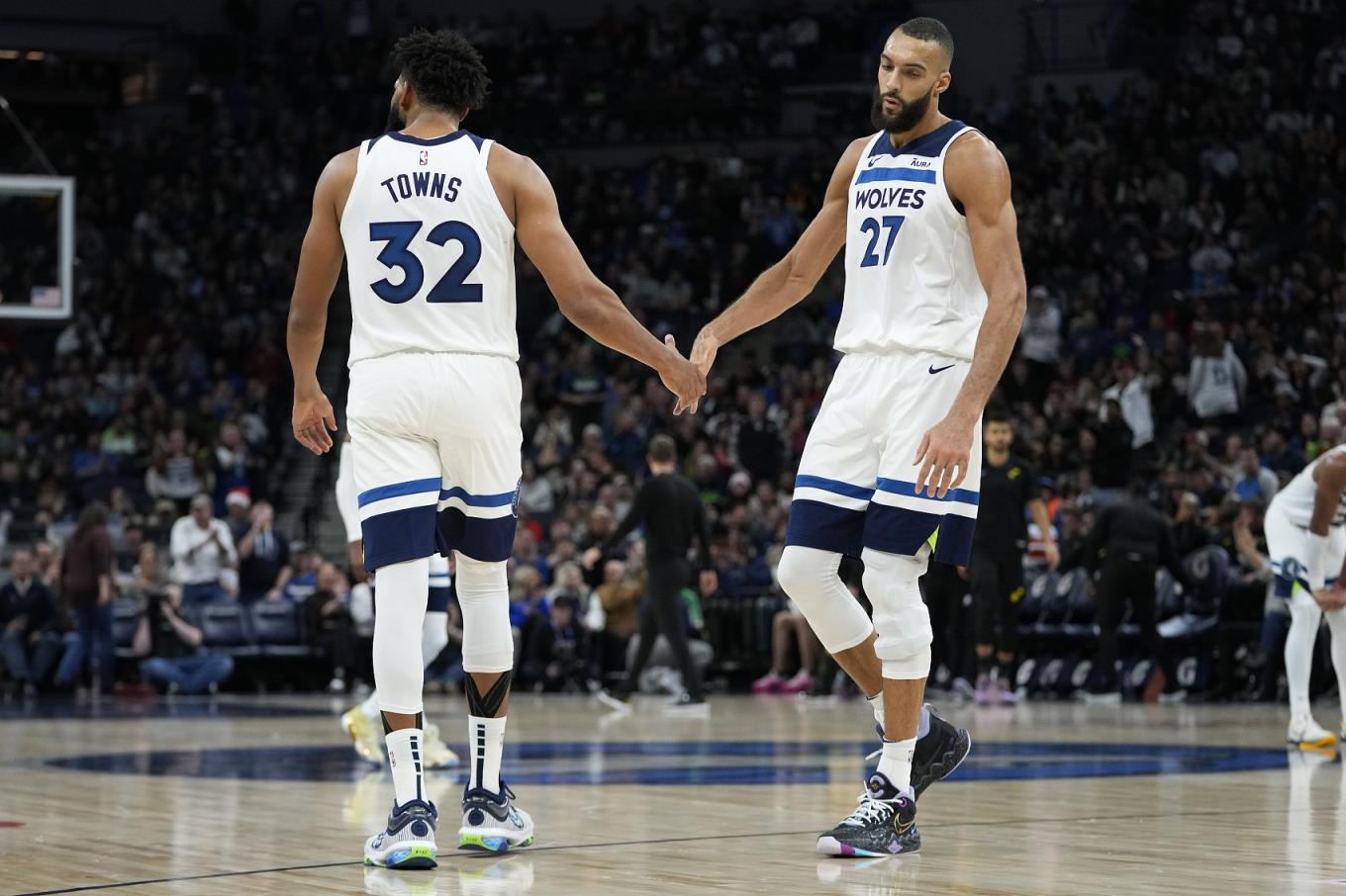 上半场太阳面对森林狼双塔办法不多,唐斯和戈贝尔合计13投8中,砍下21分16篮板。其中: